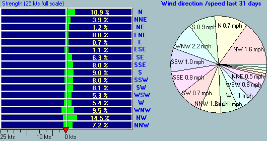 Maximum windspeed = 8.1 mph from 338°(NNW) on day 15 at time 06:09